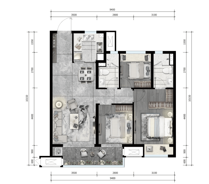建面98㎡ 建面115㎡ 建面125㎡ 建面100㎡