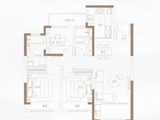 洋房户型,整体是4房2厅2卫,1梯两户高得房率,南向四面宽,主卧大套房,双联阳台,经典的改善户型。