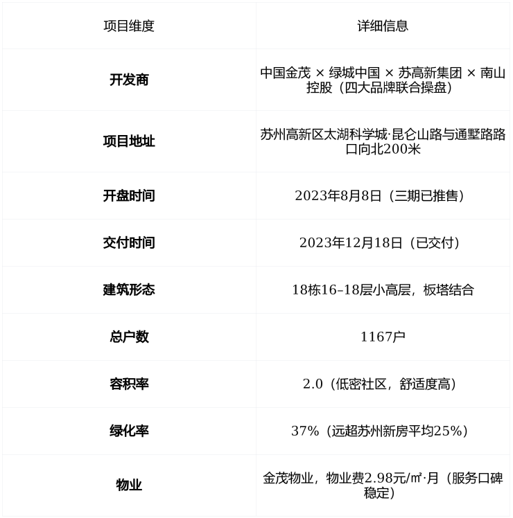 四大品牌联袂打造、15500元/㎡起的太湖科学城芯低密住区,自带教育+商业+生态全维配套,是苏州高新区少有的“职住平衡+高性价比”改善型标杆盘。