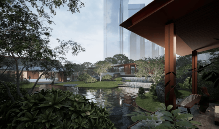 园林设计:项目沿袭宋代经典造园技艺,运用叠山、花木、理水等传统中式元素,营造“视、听、触、味、嗅”的五维体验空间,呈现“移步易景,一景一情”的美学生活意境,让业主沉浸于东方山水之美。