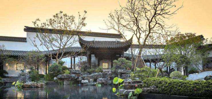 园林设计:建发“王府中式”风格,以乾隆下江南为灵感打造“一龙游四坊”景观,含人工湖澄瑞湖