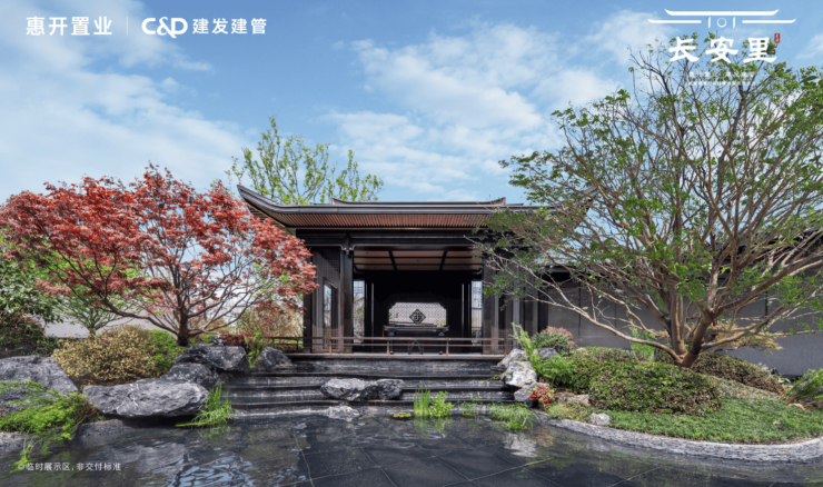 建发长安里东临白屈港生态河道,北接西漳公园、吴文化公园,周边生态环境优越,推窗即可见绿。项目内部还规划了中式禅意园林,水景、步道、休憩亭台等景观元素一应俱全,为居民提供了一个宁静、舒适的居住环境。