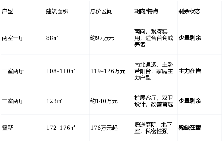 ⚠️ 已售罄户型:108㎡南向三室、110㎡标准户型,建议优先锁定108–110㎡主力户型。