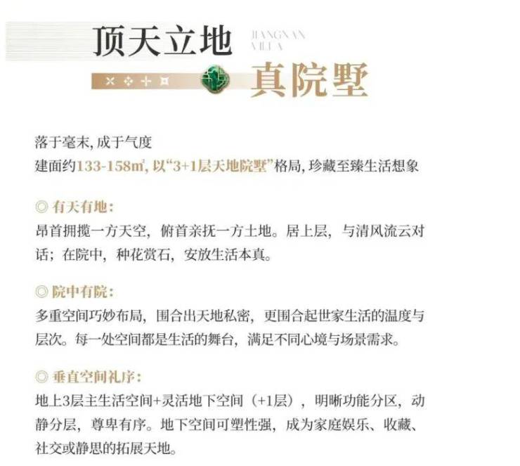 产品类型面积段层高设计总价区间核心卖点联排别墅133-158㎡首层挑空3.4米268万起独门独院、得房率超245%、地下室改造空间科技洋房123㎡标准层3米163万起四开间朝南、7.3米IMAX级阳台、U型厨房