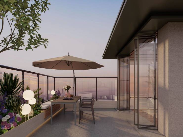 上叠(118-123㎡):270°瞰景阳台+双露台,可拓展屋顶花园(40-60㎡),3室2厅3卫