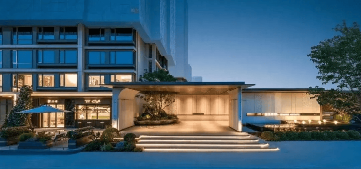 采用公建化外立面设计,搭配落地玻璃与铝板基座,现代感强;