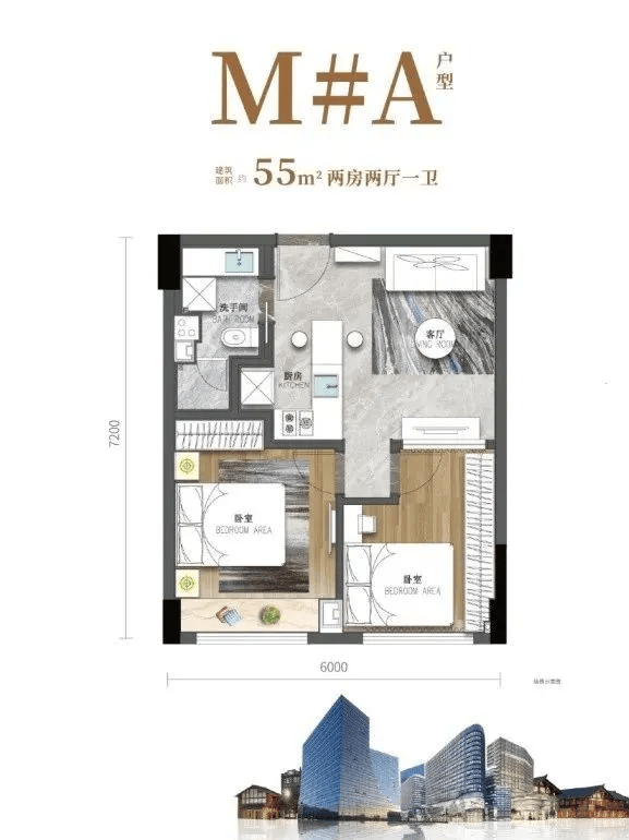 代表户型:41㎡一室一厅、55㎡两室一厅、76㎡两室两厅、126–135㎡三室两厅