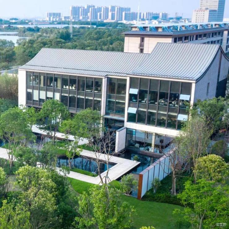 新中式建筑美学:全石材干挂立面,融合江南园林"四进院落"礼序,打造"三环一轴四坊十二巷"景观体系