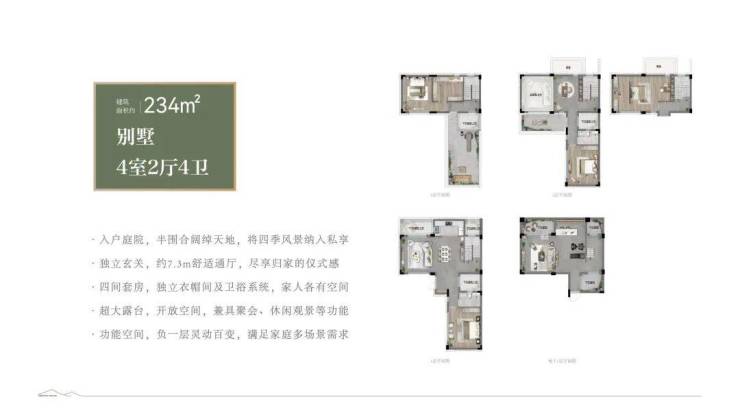234㎡4室2厅4卫:含44㎡私家花园+51㎡露台+18㎡挑空+5.4米挑高地下室