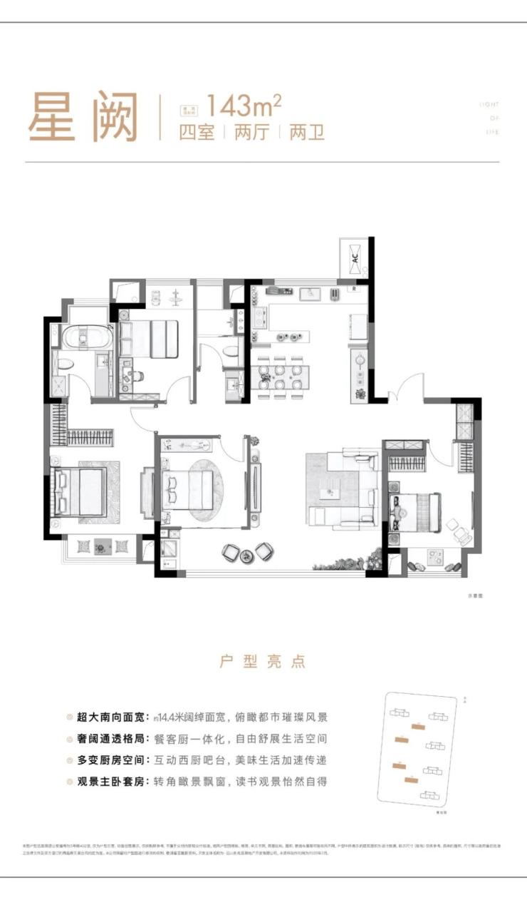总价区间:99㎡三房总价约150-165万元,143㎡四房总价约215-240万元;