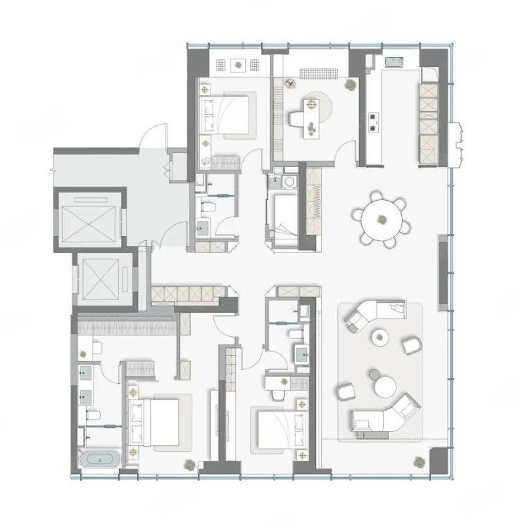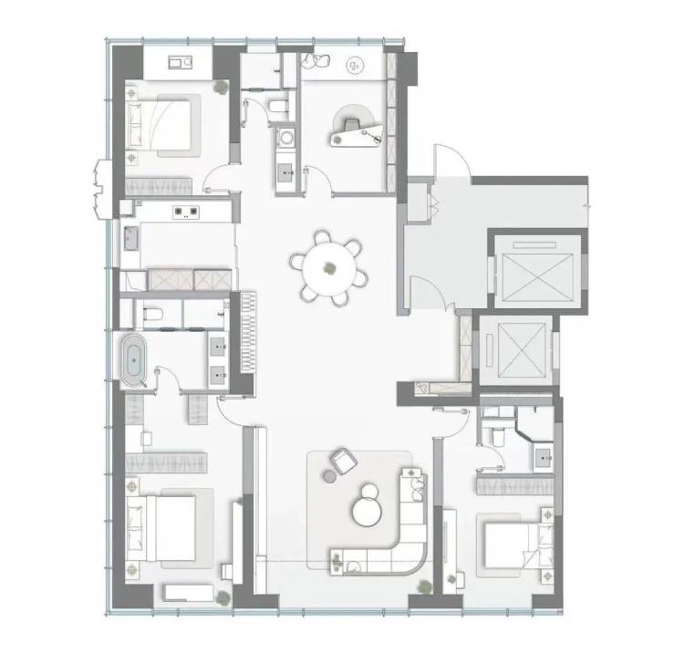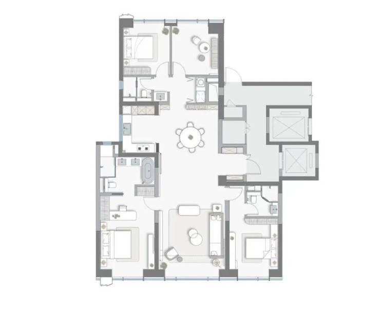 现代风尚:建筑外立面运用简约线条设计,融合江南建筑精髓,采用银灰金属饰面与高透玻璃幕墙,彰显国际化社区品质。