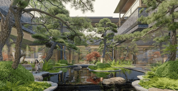 空间规划:三进院落布局+私密庭院+下沉式会所
