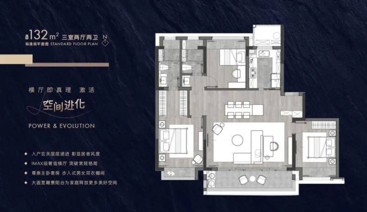 户型设计科学:主力户型105㎡三房、120㎡四房、133–143㎡四房,均采用全横厅+主卧套房设计,得房率高达75%-81%,采光通风极佳。