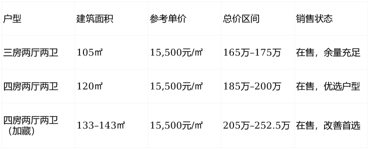 ✅ 价格优势明显 :当前均价15,500元/㎡,较周边新房均价(约20,429元/㎡)低约24%,性价比突出。