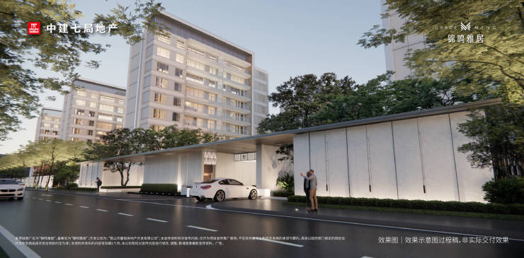 锦鸣雅居以"静奢"为核心理念,定位为"静奢美学生活范本"。建筑立面采用高透玻璃与精致铝板结合,形成虚实、光影的视觉变化,传承千年苏州美学,将苏式框景、粉墨江南等经典元素融合于立面设计