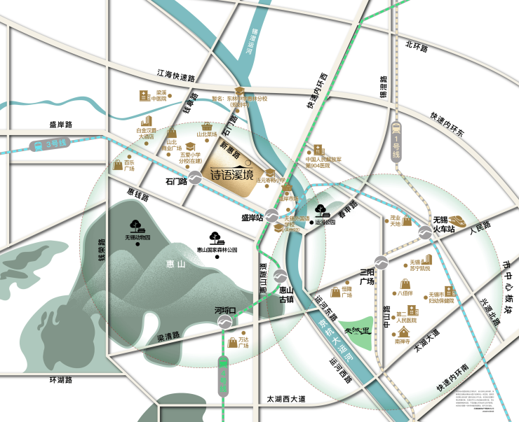 诗语溪境紧邻地铁3号线石门路站,步行约200米即可到达,邻近4号线盛岸站。双地铁交汇,快速通达无锡主城核心区,如无锡站、太湖广场、万象城等。此外,项目周边快速内环路200米范围内,江海快速路贯通全城,自驾出行也十分便捷。