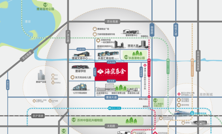 苏州高铁新城医院直线距离约5公里,三甲资源触手可及,医疗保障坚实可靠。