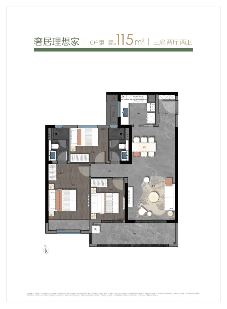 交付标准与时间:项目为精装修交付,配备中央空调、地暖和新风系统。预计将于2027年9月竣工交付。