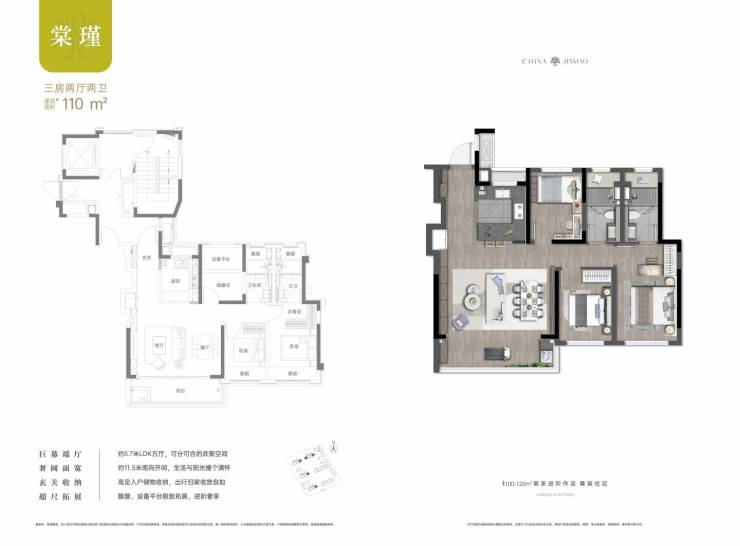 二期高层剩余房源约 38套 ,主力为 110㎡三房两卫 ,实得面积超95㎡, 全屋精装交付 ,标配: