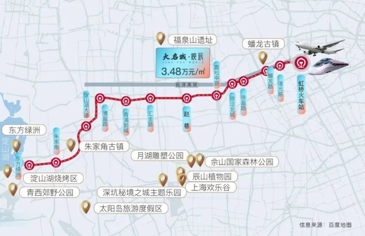 此外,从「大名城映辰」出发,乘坐17号线往西7站直达青浦华为研发中心,对于华为上班的科创人士,也是非常友好。
