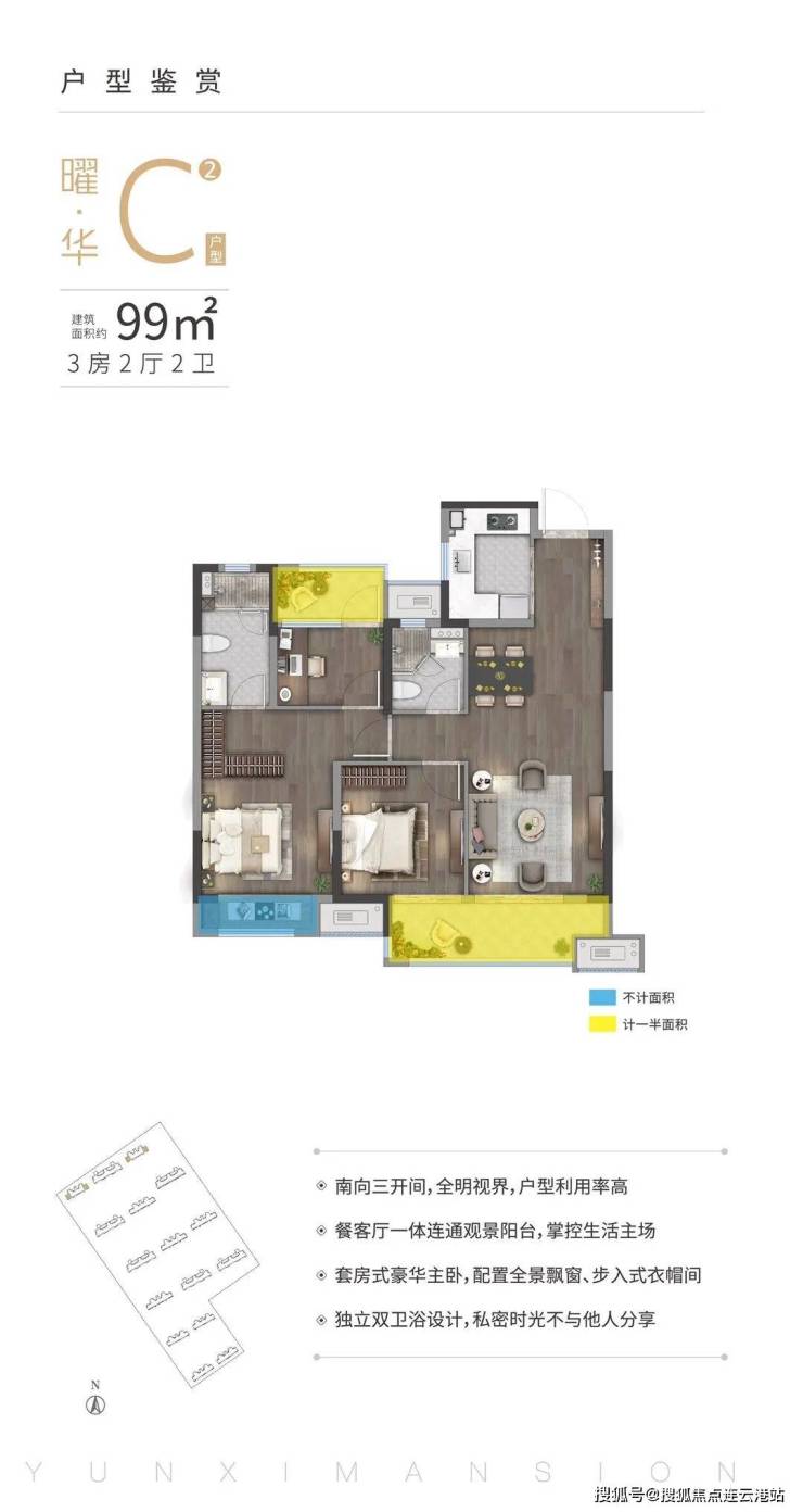 户型设计:主力户型80-118㎡,涵盖二至四房,得房率约80%。其中,80㎡户型南北通透,118㎡户型4开间朝南,动静分区,空间利用率高。