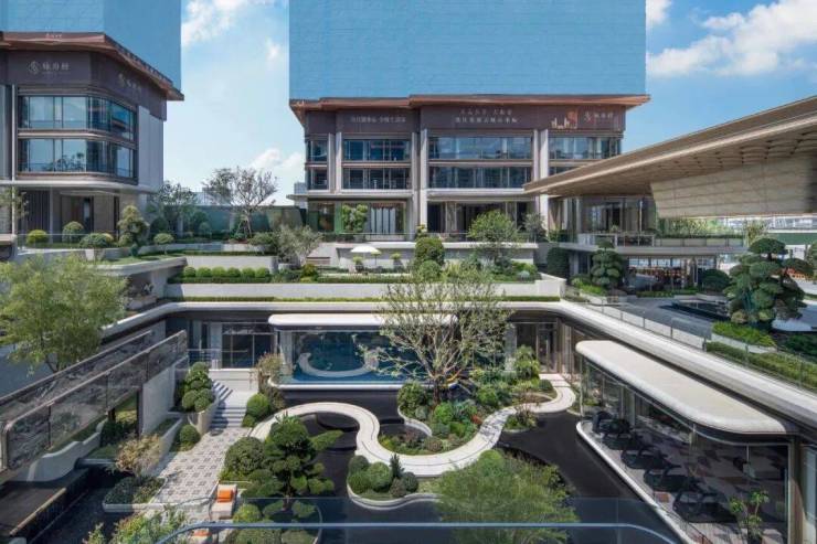 社区内部设下沉式庭院+全龄泛会所,打造“可漫步、可休憩、可社交”的立体公共空间。