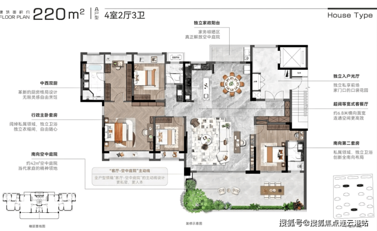 南向L型空中庭院巧妙衔接卧室,打造“厅卧同质”空间,赋予主卧更多功能性;同时,前庭后院布局,北向特赠超大公共平台,预留出无限可能的生长空间,为未来生活注入丰富多样性与不断涌现的新奇体验。