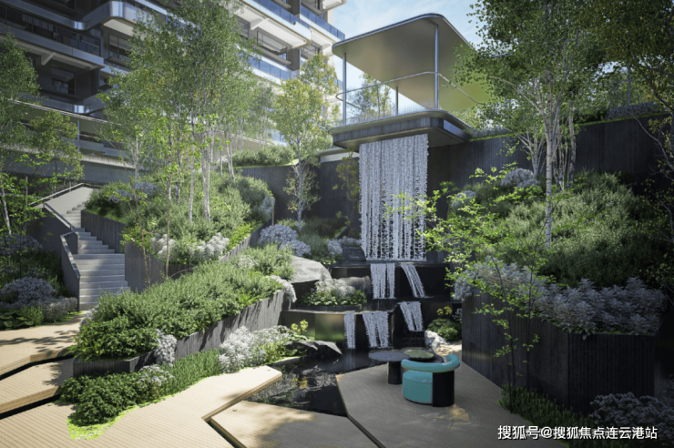 项目配备有顶尖观瀑泳池会所和1300平下沉会所!