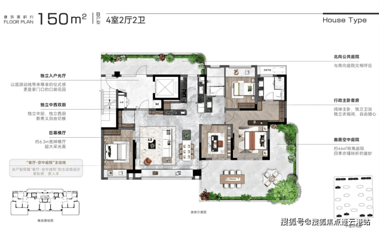 属于每个人的空中庭院丨户均约30-50㎡无界院落创新曲面转角院落,并实现全户型搭载“客厅-空中庭院”的主动线设计,整体营造立体墅式庭院生活场景。