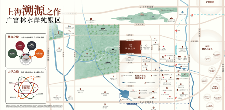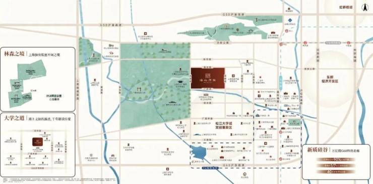紧邻G60沪昆高速,5分钟直达松江新城枢纽,12分钟抵达虹桥枢纽,25分钟直达徐家汇;