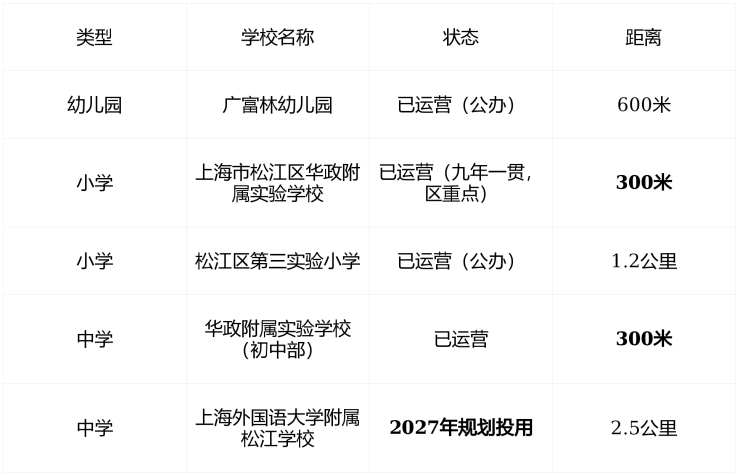 注: 无官方学区划分 ,但 华政附校为九年一贯制 ,孩子可直升初中, 教育链完整、口碑极佳 ,适合长期持有家庭。