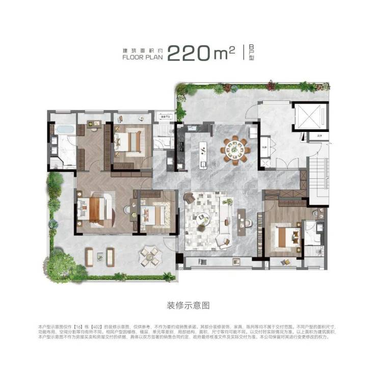 户型配置:约150㎡、185㎡、220㎡,户均约33-77㎡空中庭院