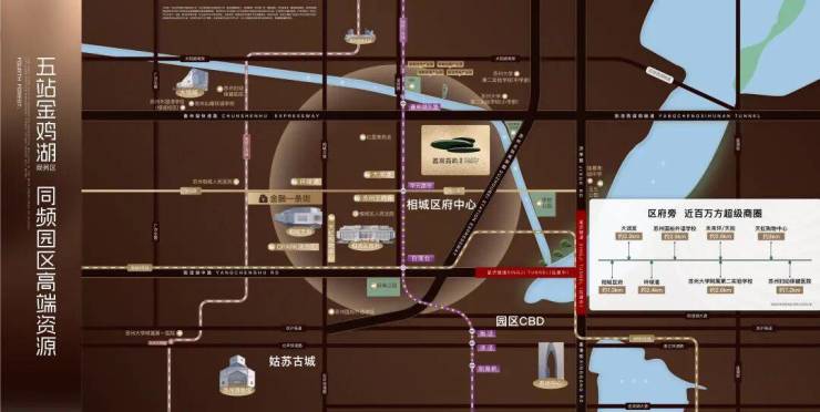 项目位于相城区府旁,依托环线快速路、隧道和地铁等立体交通网络,能够便捷连接相城区府中心、园区金鸡湖商务区和姑苏古城三大CBD。随着星济隧道的建成通车,区域价值将进一步提升。