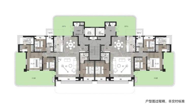 核心亮点:一梯一户,电梯厅前的空间全部是私享的。每户享有宽大挑高的南向空中庭院。