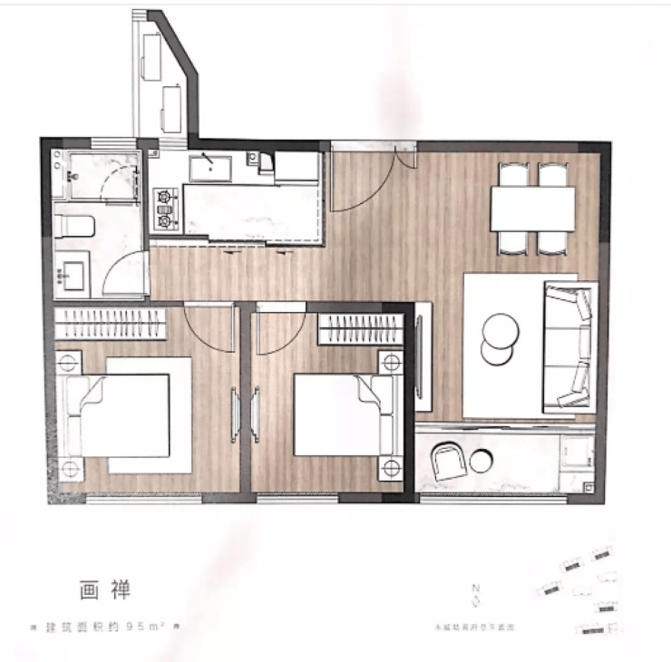 产品形态:北地块为7–12层平层SOHO,两梯四户,玻璃幕墙+陶板外立面,现代简约中透出东方克制。