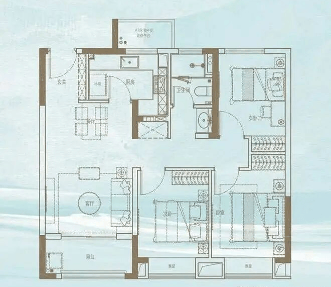 119㎡三居119㎡3室2厅2卫185-210万81%得房率,主卧套房设计,改善首选
