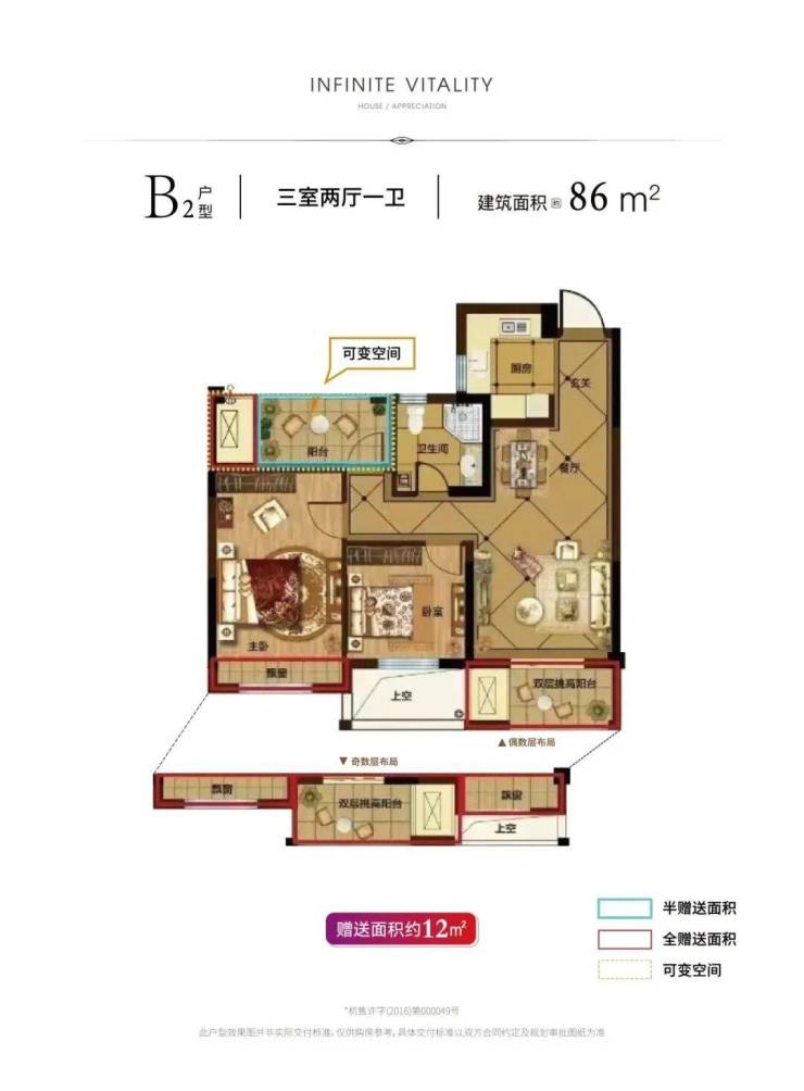 119㎡三房(含可变空间):约260万起