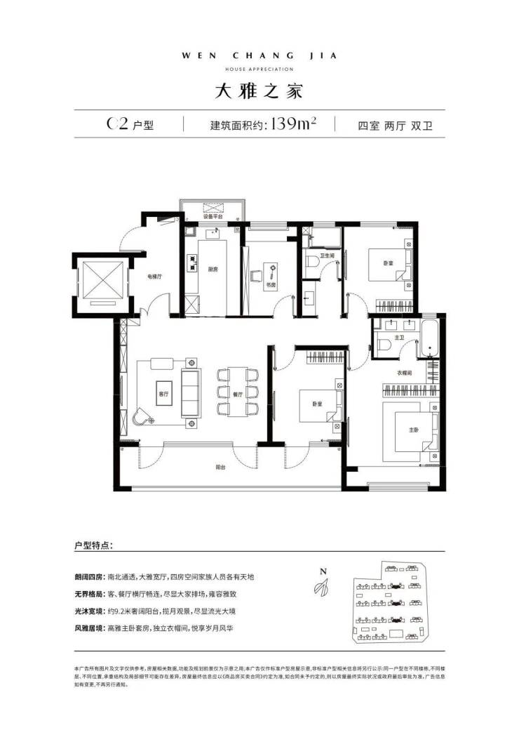 四室两厅两卫:建面约139㎡,为全生命周期户型,总价约265万/套