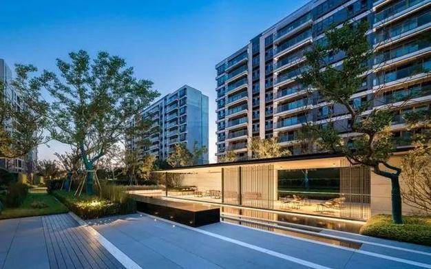 采用现代简约设计,外立面以香槟金线条勾勒,景观布局参照度假式园林,融合“一轴双园八组团”理念,营造新加坡嘉佩乐酒店般的归家体验