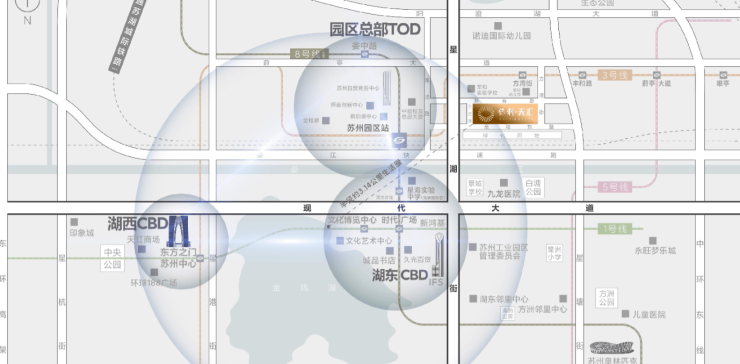 自驾网络 :紧邻娄江快速路、星塘街、星湖街等主干道,15min直达苏州火车站,25min至园区湖西CBD。