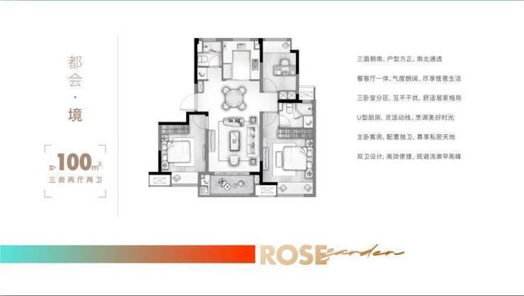 面积布局特点92㎡三室两厅一卫一梯两户,得房率85%