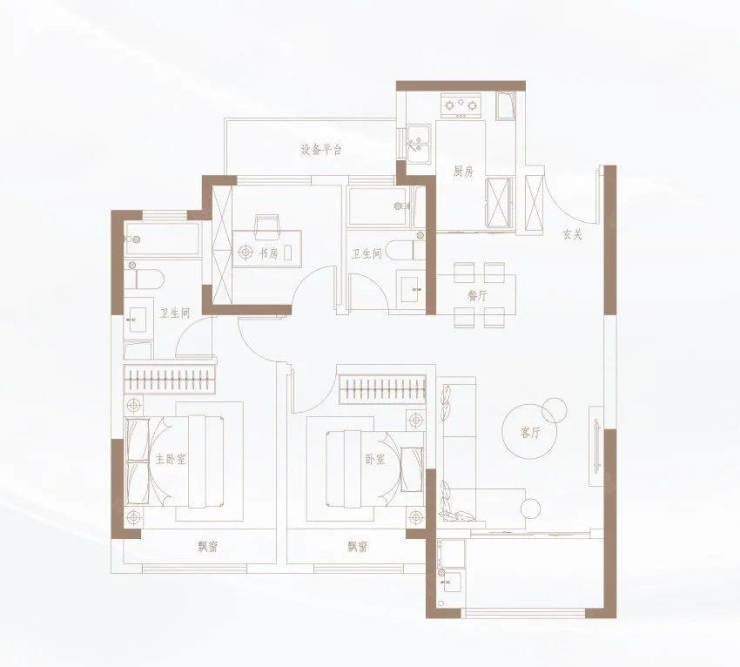 103㎡/113㎡户型较为传统,格局基本相同,3室2厅2卫,只是在尺度上有所区别。
