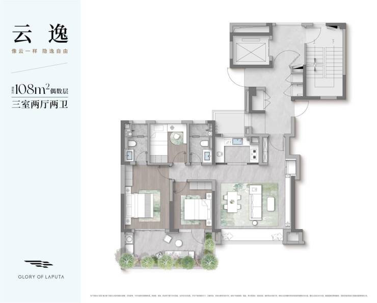 108㎡三室两厅:约240万/套,性价比首选