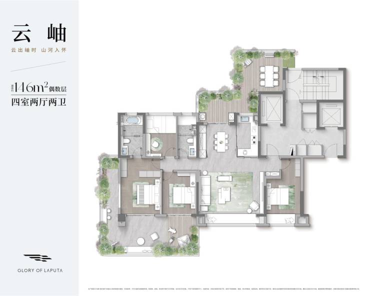 146㎡四室两厅:约370万/套,改善家庭主力款