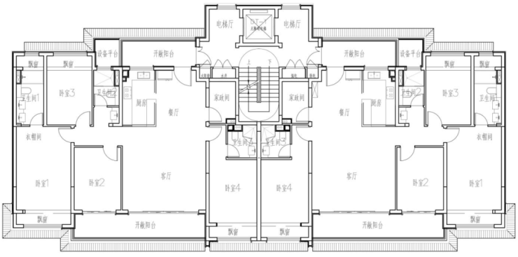 8F洋房户型,4房2厅2卫设计,全屋飘窗,南向面宽约10.2米,四开间朝南,其中3卧室均朝南,并且南向双套房。