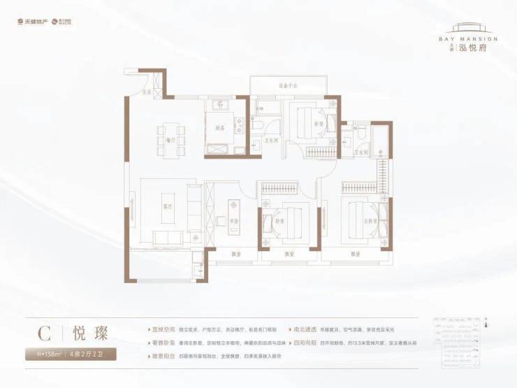 约13.3米南向面宽,将采光尺度感发挥至极致,让生活的每一面都尽得阳光无限偏爱。动静空间合理分区,拒绝牺牲卧室以换取宽厅,以达到私域居住与公域空间的完美均衡,无论是家庭活动亦或者日常休憩,均能达到满分体验。