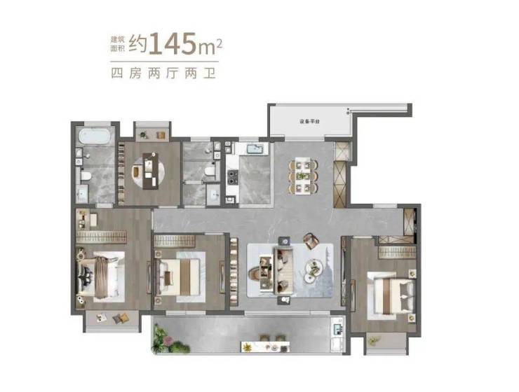 熙悦春秋共鸣当代人居向往,以建面约100-168㎡3-4房的南向横厅阔尺人居,满足不同家庭结构的人居需求。