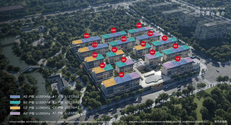 产品形态:杭州主城唯一在售纯四层叠墅,无中叠、无高低配,16栋错落布局,总计仅104席