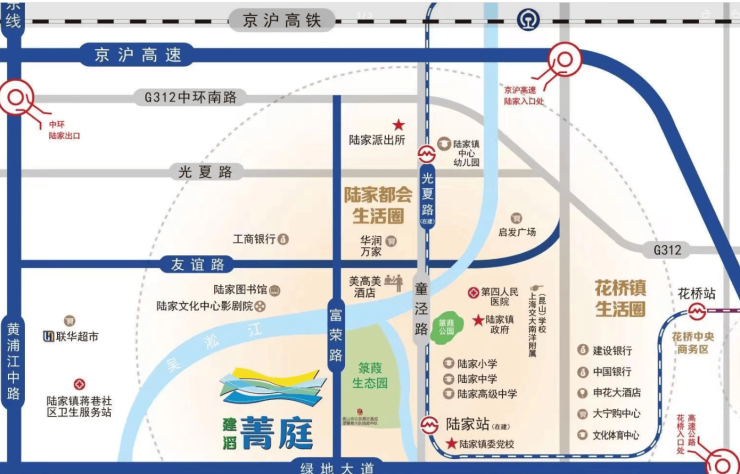 高速通勤 :临近G2京沪高速陆家出入口,约30min可达上海虹桥与苏州园区,适合双城生活族。
