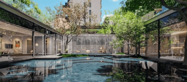 园林设计则融合东方美学与现代功能,打造包括约400㎡下沉水庭院、3000㎡尊享会客厅、900㎡趣味童玩天地、600㎡科普花园、800㎡全龄运动场地以及700米林荫健康跑道,营造出沉浸式、互动性强的社区生态空间。
